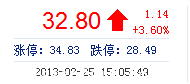 | 最 高: | 33.24 | 成交額: | 2.38億元 | 換手率: | 2.65% |