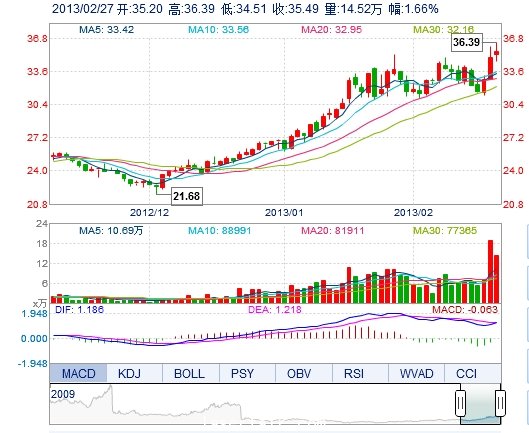 | 最 低: | 34.51 | 總市值: | 105.64億 | 市凈率: | 8.10 |