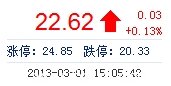 | 今 開: | 22.91 | 成交量: | 1.91萬手 | 振 幅: | 3.41% |