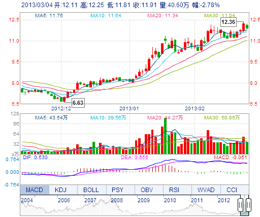 | 最 低: | 11.81 | 總市值: | 124.39億 | 市凈率: | 3.84 |