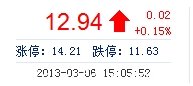 | 最 高: | 13.13 | 成交額: | 5.21億元 | 換手率: | 4.26% |