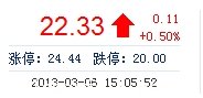 | 今 開: | 22.20 | 成交量: | 1.38萬手 | 振 幅: | 3.47% |