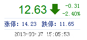 | 今 開: | 12.90 | 成交量: | 46.17萬手 | 振 幅: | 6.96% |