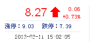| 今 開: | 8.40 | 成交量: | 62.15萬手 | 振 幅: | 9.01% |