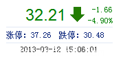 | 今 開: | 33.70 | 成交量: | 8.75萬手 | 振 幅: | 6.41% |