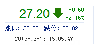 | 今 開: | 27.70 | 成交量: | 4767手 | 振 幅: | 5.04% |