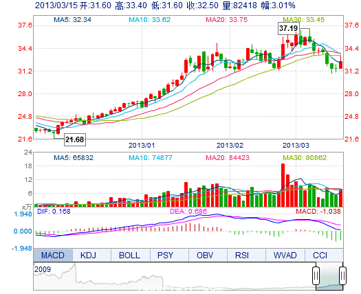 | 最 低: | 31.60 | 總市值: | 96.74億 | 市凈率: | 7.42 |