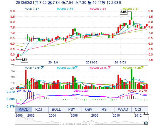 | 昨 收: | 7.60 | 流通市值: | 34.07億 | 市盈率TTM: | 30.75 |