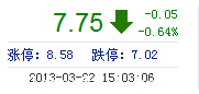 | 昨 收: | 7.80 | 流通市值: | 33.85億 | 市盈率TTM: | 30.55 |