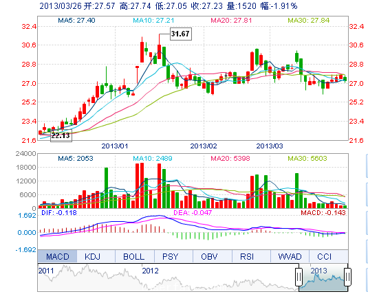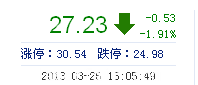 | 今 開: | 27.57 | 成交量: | 1520手 | 振 幅: | 2.49% |
