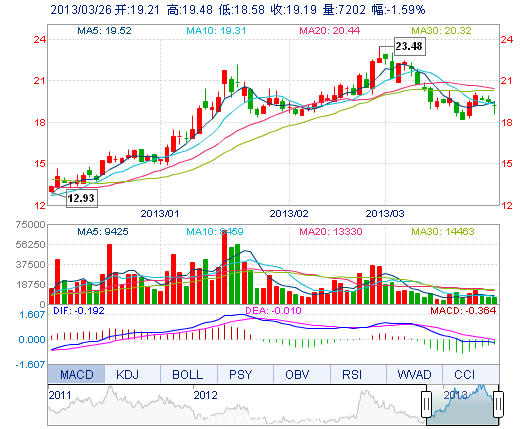 | 最 低: | 18.58 | 總市值: | 12.86億 | 市凈率: | 4.06 |
