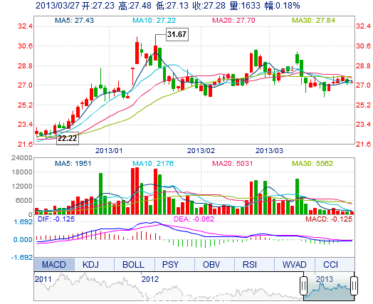 | 最 低: | 27.13 | 總市值: | 9.55億 | 市凈率: | 3.38 |