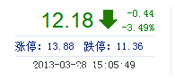 | 今 開: | 12.40 | 成交量: | 31.56萬手 | 振 幅: | 5.63% |