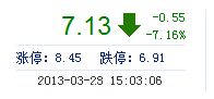 今 開: 7.60 成交量: 15.64萬手 振 幅: 6.38% 最 高: 7.60 成交額: 1.14億元 換手率: 3.58% 最 低: 7.11 總市值: 31.14億 市凈率: 2.31 昨 收: 7.68 流通市值...