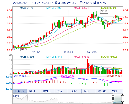 | 最 高: | 34.87 | 成交額: | 1.76億元 | 換手率: | 1.86% |