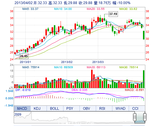 | 最 低: | 29.88 | 總市值: | 88.94億 | 市凈率: | 6.37 |
