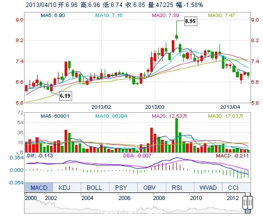 | 今 開: | 6.96 | 成交量: | 4.72萬(wàn)手 | 振 幅: | 3.16% |
