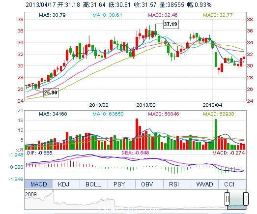 | 最 低: | 30.81 | 總市值: | 93.97億 | 市凈率: | 6.73 |