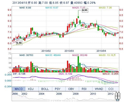 | 最 低: | 6.85 | 總市值: | 30.44億 | 市凈率: | 2.26 |