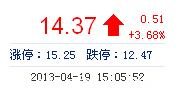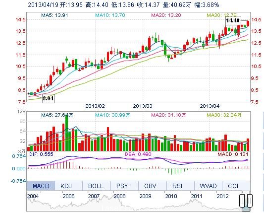 今開: 13.95 成交量: 40.69萬(wàn)手 振幅: 3.90% 最高: 14.40 成交額: 5.79億元 換手率: 4.30% 最低: 13.86 總市值: 150.08億 市凈率: 4.64 昨收: 13.86 流通市值...