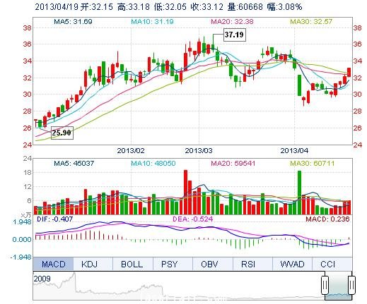 今開: 32.15 成交量: 6.07萬手 振幅: 3.52% 最高: 33.18 成交額: 1.98億元 換手率: 2.11% 最低: 32.05 總市值: 98.58億 市凈率: 7.06 昨收: 32.13 流通市值:...