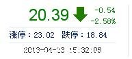 | 今 開: | 20.93 | 成交量: | 1.04萬手 | 振 幅: | 4.68% |