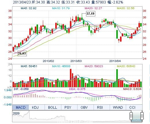今開: 34.30 成交量: 5.79萬手 振幅: 2.94% 最高: 34.32 成交額: 1.96億元 換手率: 2.02% 最低: 33.31 總市值: 99.51億 市凈率: 7.13 昨收: 34.33 流通市值:...