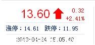 今開: 13.45 成交量: 33.98萬手 振幅: 3.09% 最高: 13.79 成交額: 4.61億元 換手率: 3.60% 最低: 13.38 總市值: 142.04億 市凈率: 4.20 昨收: 13.28 流通市值...
