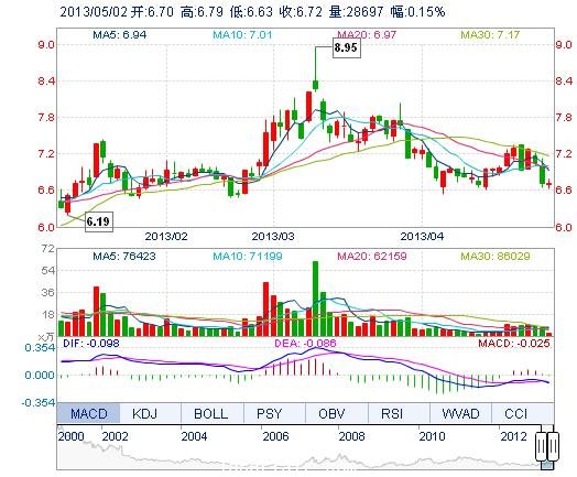| 今 開(kāi): | 6.70 | 成交量: | 2.87萬(wàn)手 | 振 幅: | 2.38% |