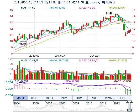 | 今 開: | 11.63 | 成交量: | 31.47萬手 | 振 幅: | 3.68% |