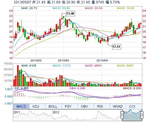| 今 開(kāi): | 21.48 | 成交量: | 9745手 | 振 幅: | 3.67% |