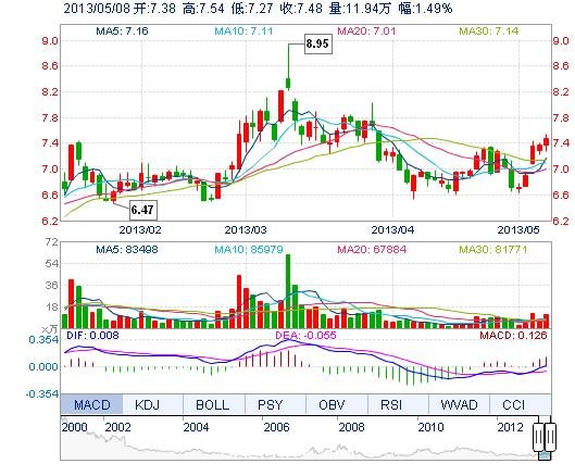 | 最 高: | 7.54 | 成交額: | 8889.79萬(wàn)元 | 換手率: | 2.73% |