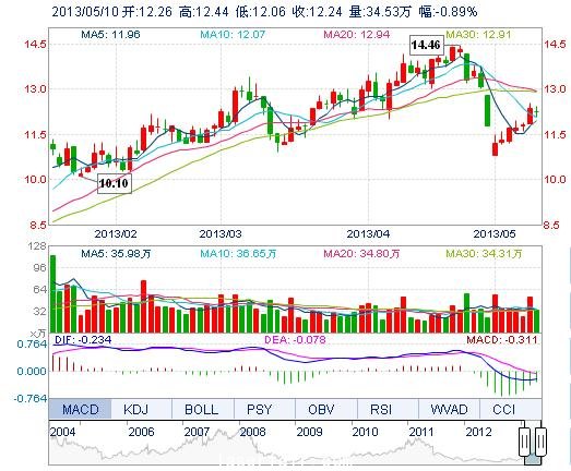今開: 12.26 成交量: 34.53萬手 振幅: 3.08% 最高: 12.44 成交額: 4.22億元 換手率: 3.65% 最低: 12.06 總市值: 127.83億 市凈率: 3.69 昨收: 12.35 流通市值...