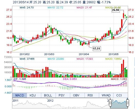 | 最 低: | 24.39 | 總市值: | 16.78億 | 市凈率: | 5.24 |
