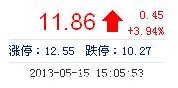| 最 高: | 11.91 | 成交額: | 4.55億元 | 換手率: | 4.11% |