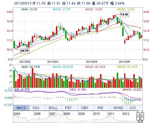 今開: 11.55 成交量: 38.87萬手 振幅: 4.12% 最高: 11.91 成交額: 4.55億元 換手率: 4.11% 最低: 11.44 總市值: 123.87億 市凈率: 3.57 昨收: 11.41 流通市值...