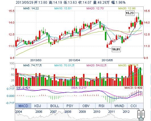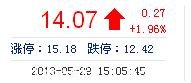 今開: 13.80 成交量: 48.29萬手 振幅: 4.06% 最高: 14.19 成交額: 6.76億元 換手率: 5.11% 最低: 13.63 總市值: 146.95億 市凈率: 4.24 昨收: 13.80 流通市值...