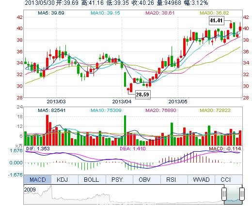| 最 高: | 41.16 | 成交額: | 3.83億元 | 換手率: | 3.31% |