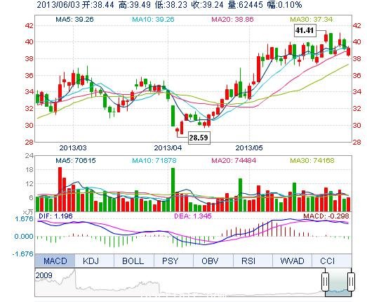 今開: 38.44 成交量: 6.24萬手 振幅: 3.21% 最高: 39.49 成交額: 2.43億元 換手率: 2.17% 最低: 38.23 總市值: 116.80億 市凈率: 8.17 昨收: 39.20 流通市值...