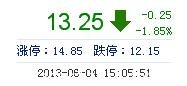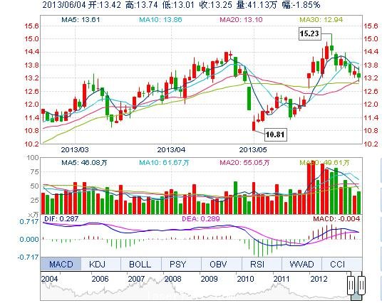 今開: 13.42 成交量: 41.13萬手 振幅: 5.41% 最高: 13.74 成交額: 5.49億元 換手率: 4.35% 最低: 13.01 總市值: 138.38億 市凈率: 3.99 昨收: 13.50 流通市值...
