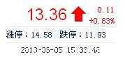 | 最 高: | 13.47 | 成交額: | 3.14億元 | 換手率: | 2.49% |