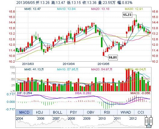 今開: 13.26 成交量: 23.55萬手 振幅: 2.42% 最高: 13.47 成交額: 3.14億元 換手率: 2.49% 最低: 13.15 總市值: 139.53億 市凈率: 4.03 昨收: 13.25 流通市值...