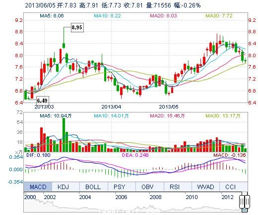 今開(kāi): 7.83 成交量: 7.16萬(wàn)手 振幅: 2.30% 最高: 7.91 成交額: 5593.43萬(wàn)元 換手率: 1.64% 最低: 7.73 總市值: 34.11億 市凈率: 2.44 昨收: 7.83 流通市值: ...