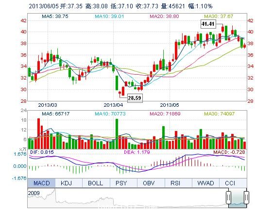 今開: 37.35 成交量: 4.56萬手 振幅: 2.63% 最高: 38.08 成交額: 1.71億元 換手率: 1.59% 最低: 37.10 總市值: 112.31億 市凈率: 7.85 昨收: 37.32 流通市值...