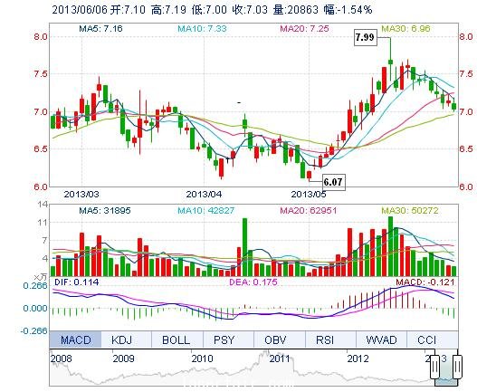 今開: 7.10 成交量: 2.09萬手 振幅: 2.66% 最高: 7.19 成交額: 1482.44萬元 換手率: 0.76% 最低: 7.00 總市值: 20.04億 市凈率: 3.18 昨收: 7.14 流通市值: ...