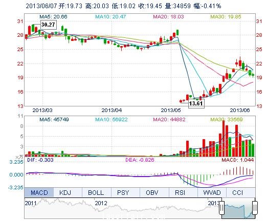 | 今 開(kāi): | 19.73 | 成交量: | 3.49萬(wàn)手 | 振 幅: | 5.17% |