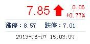 今開: 8.08 成交量: 18.97萬手 振幅: 5.52% 最高: 8.23 成交額: 1.52億元 換手率: 4.34% 最低: 7.80 總市值: 34.29億 市凈率: 2.45 昨收: 7.79 流通市值: 34...
