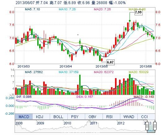 今開(kāi): 7.04 成交量: 2.68萬(wàn)手 振幅: 2.56% 最高: 7.07 成交額: 1867.82萬(wàn)元 換手率: 0.98% 最低: 6.89 總市值: 19.84億 市凈率: 3.15 昨收: 7.03 流通市值: ...