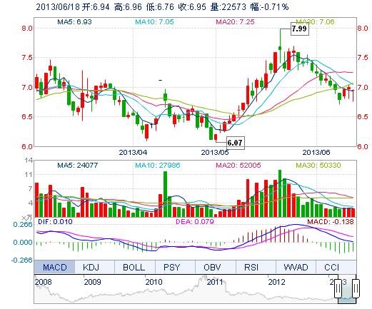 | 今 開: | 6.94 | 成交量: | 2.26萬手 | 振 幅: | 2.90% |
