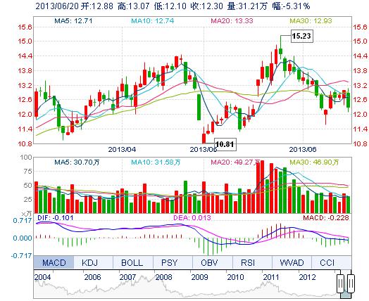 今開: 12.88 成交量: 31.21萬手 振幅: 7.47% 最高: 13.07 成交額: 3.95億元 換手率: 3.30% 最低: 12.10 總市值: 128.46億 市凈率: 3.71 昨收: 12.99 流通市值...